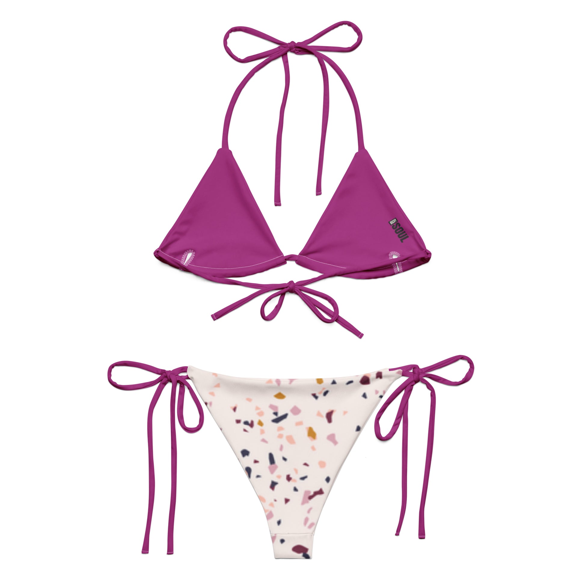 Mantente cómoda y elegante todo el verano con este bikini de triángulo reciclado. Está confeccionado con poliéster reciclado suave con doble capa y UPF 50+. ¡Ajusta sus cordones como quieras y estarás lista para nadar!